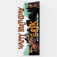 The design bursts with prehistoric attitude, blending a scratched black paint backdrop, mint green accents, and a bold personalized name in dino-orange. Whether you're hosting a backyard bash or turning your living room into a dino den, this banner is the perfect photo-ready focal point.