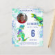 A sixth birthday to remember for the child who loves dinosaurs. These colourful Roaring T Rex invite Dino fans to a fun 6th birthday party. Blue and green watercolor splash background with Tyrannosaurus rex in vibrant blue green and teal Personalize this multicolored psychedelic Tyrannosaurus rex design with a photo, the number of the birthday and the party details and you are all set for a fun packed dinosaur themed dino birthday. All dinosaur species are welcome. Original artwork Illustration by Catherine Sweetman