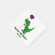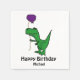Wonderful artistic funny green t-rex dinosaur holding purple balloon original art custom paper napkins.  Perfect for birthdays for kids who love dinosaurs and for those special over the hill birthdays.