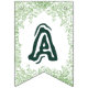 T-Rex Dinosaur and Jurassic jungle foliage watercolor Happy Birthday bunting. Ideal for a boy or girls dino birthday party of any age especially Jurassic jungle themed celebrations. The words Happy Birthday in Modern fun dark green typography. Original artwork by artist Catherine Sweetman