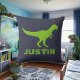 Custom T Rex dinosaur throw pillow cushions for kids bedroom, play room or nursery room. Green prehistoric Tyrannosaurus rex animal design with customizable color background. Personalized wild trex silhouette for children. Fun for kindergarten, grammar school, elementary school child. Cute Birthday or Christmas gift idea for boys and girls. Fun dinasaur home decor and accessories for sofa, couch or bed. Make your own for son, grandson, newborn baby, nephew etc.