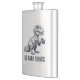 The product is a good size and came exactly as it was pictured. The lid is not attached to the flask, which could be dangerous on drunken nights... The print came out surprisingly well and looks very sharp. Would definitely recommend.