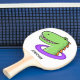 This ping pong paddle has an illustration of cute cartoon T-Rex head popping out of a purple ring. You can personalize it by putting your name on it using the template. It is a fun design suitable for all.
