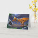 Teddy the T-Rex has fun on Halloween in this greeting card.