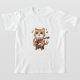 Capture a melody of cuteness with this charming character design. The artwork features an enthusiastic orange and white tabby cat perched on a small wooden stool. With wide, star-filled sparkly eyes and rosy cheeks, the happy kitty is strumming an acoustic guitar. Its mouth is open in song, accompanied by floating black musical notes, creating a joyful and musical scene.