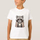 This heartwarming artwork features an adorable grey raccoon sitting comfortably while wrapped snugly in a beige and red plaid blanket. The charming woodland character holds a simple white mug with steam rising from it, suggesting a hot drink like coffee or cocoa. With large, glossy eyes, distinct facial markings, and cute paws peeking out, this design captures the essence of warmth and relaxation against a clean background.