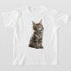 Une charmante illustration numérique d'un chaton Maine Coon duveteux avec des yeux ambre expressifs, regardant vers le haut avec un regard curieux et doux. Le chaton présente des oreilles touffues caractéristiques et une fourrure tabby magnifiquement détaillée dans des nuances de brun et de charbon. Il porte un pull en laine grise tricoté à la main, confortable, avec un point de câble texturé et un petit détail de bouton marron au cou. L'œuvre d'art est présentée dans un style net et détaillé sur un fond gris clair uni, mettant en valeur les textures de la fourrure douce et l'atmosphère chaleureuse et fantaisiste du portrait.