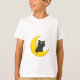 A sweet, dreamy illustration of a small black cat sitting gently on a glowing yellow crescent moon. The cat’s round eyes, soft blush cheeks, and tiny star on its forehead add a magical, kawaii touch. Smooth lines, warm moonlight tones, and a deep dark background create a calm, enchanting night‑sky mood that feels cozy, whimsical, and full of quiet wonder.