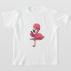 This design features a humorous and lovely cartoon flamingo engaging in a beauty routine. The bright pink bird is sitting with one long leg crossed over the other, carefully applying vivid purple-pink nail polish to its claws. It is holding the polish bottle in one wing and the brush in the other, with a focused yet happy expression. The scene captures a fun moment of self-care and relaxation against a plain light gray background.