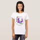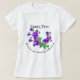 Fleur violette avec tiges Sweet Peas botanique par l'artiste sur T-Shirt avec texte. L'écriture sur le t-shirt donne le nom botanique et les pays d'origine. Une fleur délicate et belle apporte un message aux amoureux de la nature et un rappel de la beauté naturelle de la terre.