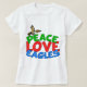 Un bel aigle au-dessus des jolis mots Aigles de Paix Amour en vert, rouge et bleu.