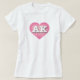Ce t-shirt est orné d'un coeur rose calme, cool et ramassé, avec un centre blanchi contenant les lettres coques supérieures blanches en gras AK, l'abréviation officielle de l'état de l'Alaska, la dernière frontière.
