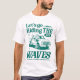 Ce t-shirt blanc présente un graphisme turquoise de style vintage avec le texte "Allons faire le tour des VAGUES". Un pick-up classique avec planches de surf et une femme dans un bikini et un casquette cowboy penché contre elle est centré. L'année "1970" est en cercle, et "LONG BEACH CALIFORNIA SURFING PARADISE" est en bas.
