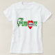 Un beau T-shirt blanc à la mode pour femmes avec le mot italien "AMORE" écrit en vert sur la poitrine, et au centre du coeur est le mot "Gesù" - Amour Jésus (Amore Gesù)