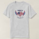 Portez votre fierté et exprimez votre reconnaissance à ceux qui ont servi pour notre pays. Rendons hommage à nos anciens combattants en portant fièrement ce T-shirt patriotique qui présente notre drapeau américain en forme de coeur avec des ailes d'anges rouges, blanches et bleues de chaque côté. Les étoiles rouges blanches et bleues sont montrées ci-dessus les mots merci pour votre service. Ce design a été créé par Jacqueline Sleter.