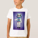 Un chat de dessin animé cool en costume astronaute flottant dans l'espace extra-atmosphérique violet étoilé.