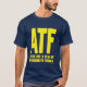 Parodie drôle de l'uniforme d'ATF porté par des agents du bureau des USA de l'alcool, du tabac, et des armes à feu. Votre drinkin', smokin', et amis de shootin aimeront ceci ! Conception jaune lumineuse sur la chemise de bleu marine… juste comme la chose vraie. Vous pouvez également mettre cette conception sur n'importe quelle autre chemise de couleur.