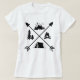 Un design cool pour les aventuriers, avec une montagne, feu de camp, arbres et tente avec deux flèches.