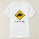 Attention à tanuki ! Ces petits chiens de raton laveur du Japon ont tendance à avoir des problèmes avec la circulation automobile, vous verrez donc ces panneaux affichés dans les zones de passage de tanuki. Cette chemise présente une reproduction de ce panneau de rue, avec la légende "Tanuki ni Chuui" ou "Attention à Tanuki" en japonais.