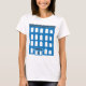 Dehors de l'avant de l'hôtel bleu avec beaucoup de fenêtres. Ce design semble vraiment efficace sur ce T-shirt féminin