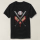Ce t-shirt noir présente un design graphique avec deux chauves-souris de baseball croisées et un baseball au centre. Les chauves-souris sont argentées, et le baseball a une couture rouge. Une forme de bouclier en détresse derrière les chauves-souris ajoute une touche vintage au design. Cette chemise est parfaite pour les fans de baseball.
