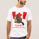 Jouez vilain sur les mots pour ces cadeaux et vêtements amusants. Ils présentent un castor assis avec le drapeau canadien dans l'arrière - plan. Le texte dit "Canada... Accueil du castor de la fusillade"