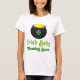 Ce bébé irlandais mignon venant bientôt tee - shirt de dames a le pot chanceux d'or de lutin avec le logo de trèfle de quatre feuilles et la maman verte de st patrick à être citation. Elle fait une grande idée de cadeau pour une mère de attente.