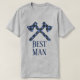 Un super t-shirt gris pour le meilleur homme bûcheron double hache de croix, cette chemise présente "Best Man" écrit en police bleue. Il y a une double hache croisée avec une impression plaid bleu et noir. Oeuvre créée par : AMBillustrations http://www.etsy.com/shop/AMBillustrations/