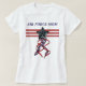 Voici une super chemise pour la fière maman de la Force aérienne. Des images de rubans rouges et bleus coulent d'une étoile bleu foncé sur le devant de cette chemise. Le diffuseur d'étoiles est placé sur un arrière - plan rayé rouge. Au-dessus de l'image se trouve le texte personnalisé en bleu "Air Force Mom".