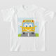 Un bus scolaire joyeux avec un visage souriant. Ce design semble vraiment efficace sur ce T-shirt garçon