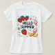 Dites bonjour aux jours ensoleillés avec cette chemise "Hello Summer" ludique! Doté de fraises dessinées à la main, de tranches d'orange juteuses et de cônes de crème glacée rose sucrée, ce design coloré apporte la joie de l'été à votre garde-robe. Idéal pour les journées balnéaires, les barbecues ou simplement pour profiter du soleil. Léger, amusant et plein d'allure fruitée, ce tee-shirt est votre coup de coeur pour des ambiances estivales joyeuses.