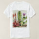 The image shows a watercolor illustration of three types of cacti and succulent plants.