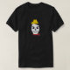 Calaca cómica con gorro de papel amarillo, pañoleta roja atada al cuello y bigote diminuto.