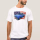 1965 Camion Chevy C10 en peinture bleue, abaissé avec roues Halibrand. Le camion est montré devant un drapeau américain rouge blanc et bleu.