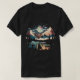 Un design cool pour les amoureux du camping avec un paysage de montagne au bord d'un lac la nuit avec une tente et un feu de camp.