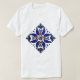 Un motif floral bleu et blanc stylisé, avec des touches d'orange, dans le style traditionnel Talavera