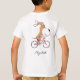 Jolie T-Shirt pour le Garçon avec une illustration de dessin animé de mignonne chiot à vélo. Grand cadeau pour l'enfant, surtout s'il est un fan de vélo et amoureux des chiens.