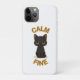 The design features a sleek **black cat face with glowing golden eyes**, surrounded by a subtle gold halo, and paired with the words **“CALM – FINE”** in smooth curved typography.
