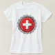 Le drapeau suisse sur un casquette de bouteille. Ce design semble vraiment efficace sur ce T-shirt féminin