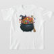 Cauldron De T-shirt Giggle & Gummies. Des poutres joyeux en chaudron, farcies de bonbons qui explosent comme des confettis, arborant fièrement un casquette sorcier. Son pote à balai se penche de près, attendant clairement le décollage à sucré, la plus belle sorcière d’Halloween !
