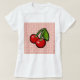 Cerises rouge vif sur un arrière - plan de motif de fleurs roses de style rétro