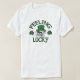 Caractéristiques de conception du jour de ce St Patrick un crâne et os croisés avec un casquette supérieur vert et shamrocks et légende "se sentant chanceuse."