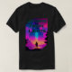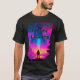 Venture into a neon-soaked, futuristic landscape with this striking design. Featuring a lone explorer beneath vibrant city lights, this tee is a must-have for synthwave fans and lovers of retro-futurism.