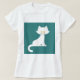 Un adorable chat blanc sur un arrière - plan vert. Ce design semble vraiment efficace sur ce T-shirt féminin