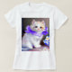 T-shirt avec un chaton blanc magnifique ! Un chaton moelleux porte un collier de fleurs violettes. Un bol bleu de fleurs blanches et violettes se trouve à droite. Un cadeau merveilleux pour les amoureux de les chats et les amateurs d'art victorien !