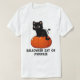 Mignonne chat noir assis calmement sur un citrouille orange.