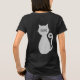 Message original personnalisé de chat gris sur la T-shirt femme noire. Le design est une silhouette de chat. Les deux textes, à l'avant et à l'arrière peuvent être customisés.