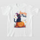 Entrez dans l'esprit éffrayant avec cet adorable t-shirt Halloween "Éffrayant Paws" ! Il est composé d'un mignon chat noir aux grands yeux jaunes et murmure, portant un casquette sorcier violet et une écharpe assortie, assis sur le dessus d'une lanterne de jack-o’ brillante. Petits citrouilles, bonbons, points turquoises et formes d'starburst orange ajoutent au charme festif. Avec un texte orange ludique lisant "Éffrayant Paws", cette chemise est parfaite pour les amoureux de les chats comme pour les fans d'Halloween. Idéal pour les fêtes, les astuces ou les journées d'automne, amusantes pour les enfants et les adultes !