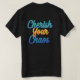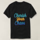 Le design du t-shirt comporte l'expression "Cherish Your Chaos" en caractères gras et multicolores. La nature chaotique de la phrase se reflète dans les couleurs vibrantes et contrastées et l'agencement dynamique des lettres. Le design attire l'attention et encourage le porteur à embrasser et à apprécier les aspects imprévisibles et souvent désordonnés de la vie.