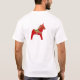 Cette image de T-shirt Chevaux de Noël est d'un cheval en bois dessiné, sculpté et peint par Julia Morrill
